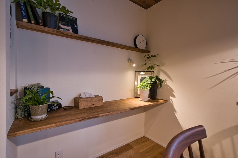 一覧 < new back > 大津市国分2丁目 緑と家族がつどう家 LDKと一体アになったタタミコーナーやカウンターなど、緑がある空間で家族がそれぞれの時間を楽しめるポイントを設けました。 設計段階から、『ここにこのサイズの植物を置きたい』とイメージすることで、飾り棚の位置や素材、全体の色合いをトータルでコーディネートできました。 Gallery 一覧 < new back > 最新の施工事例 コンパクトで洗練された家 自然を感じられるハイセンスな家 木の温もりと静寂が調和するモダンナチュラルな家 自然体でいられる家 住みやすさを叶えた快適空間の家 三角垂壁がおしゃれな家